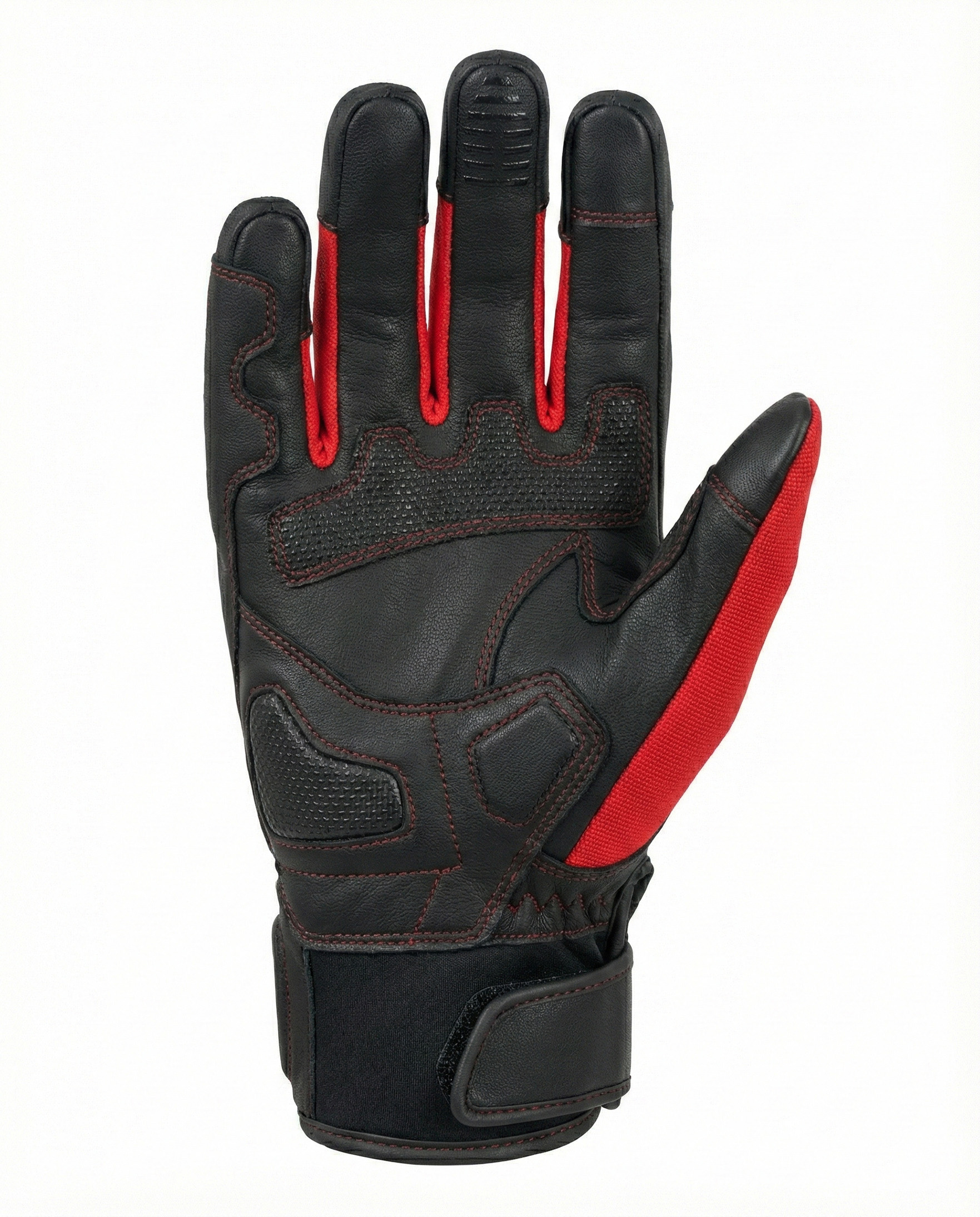 Accordion Flex Zones: Ribbed leather on the fingers for unrestricted throttle and brake lever control.
